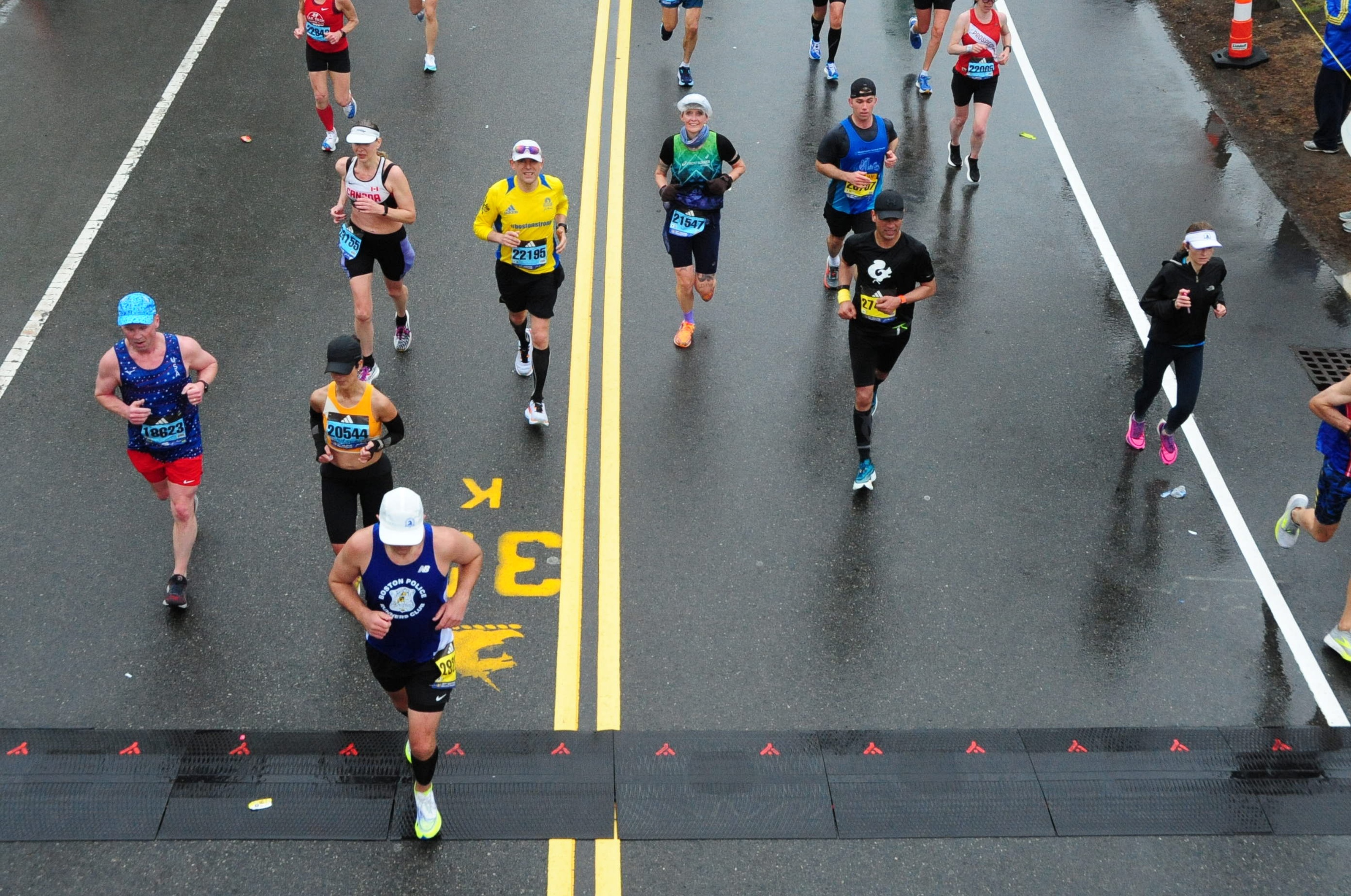 The Boston Marathon runs from the town of Hopkinton to downtown Boston. It's a logistical challenge every year to bring 30,000 runners on the morning of the marathon with hundreds of school buses to the start-line in Hopkington